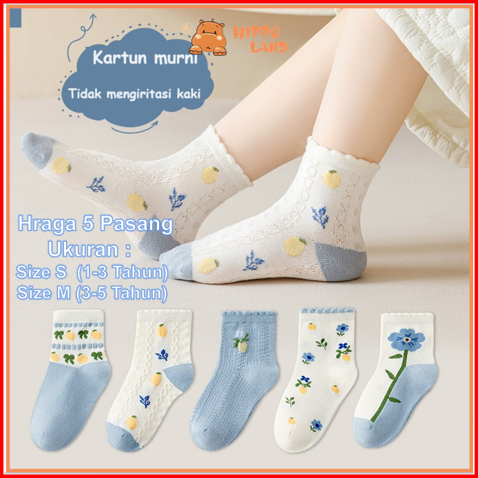 Hippoland 5 Pasang Kaos Kaki Korea 1-5thn Ankle Socks Kelinci Beruang Lotus Harimau Mata Kaki Motif Karakter Bunga Dino