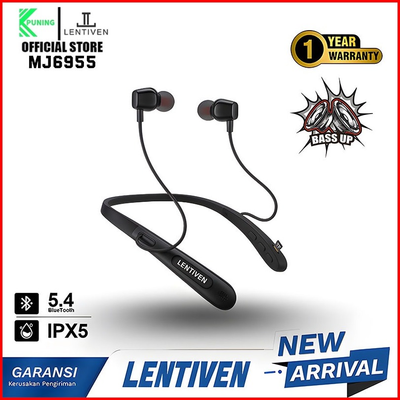 Puning Lentiven Headset Bluetooth Wireless Sport Music Magnetik Bass Stereo Dengan Slot Kartu Tf Sd Mj6955