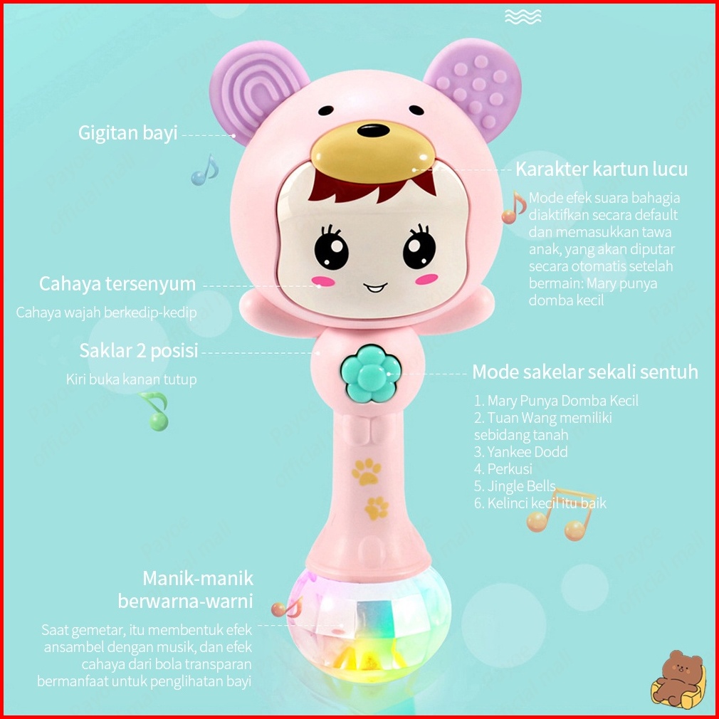 Payoe Mainan Rattle Bayimainan Tongkat Rattlemainan Bayi Tongkat Rattle Teether Musik Lampu Kelap Kelip