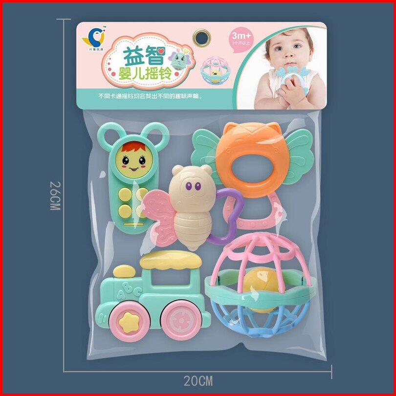 .. Rattle Teether Bayi Isi 5 Pcs Gigitan Bayi Silicon Lembut Bpa Free Teether Bayi