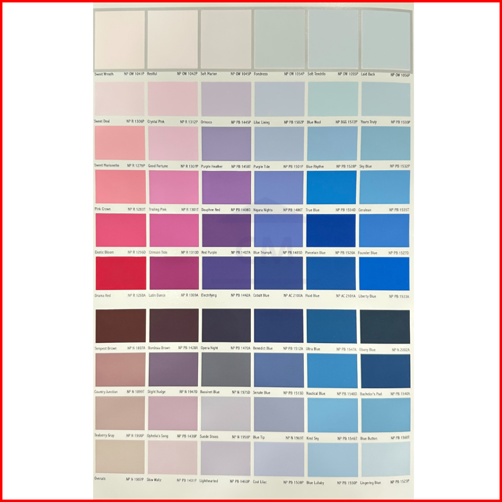 WARNALAIN CHAT ADMIN, 1001 Brilliant White, White 145, 1759T Sweet Escapade, 1173P Warm Toast, 1002P Snow White, 1049P Special Touch, 1765D Green Hiils, 1681D Spring vigor, 1445P Orinoco, Purple Heather 1458T, Great Seascape, 1011P Soft Tissue, 1014P Daisy White, 1083P Reticent White, 2045T Smoking Grey, 1852P Birch Patina, 1766P Young Shepherd, 1864TArtistImpresion, 1822T Wood Box, 3195P Sand Castle, 1385T Wet Moccasin, 1378T Rustic Leather, 1380DPolishedLeather, 2004T Miner Gray, 1874T Soft Fur, 1859P Wispy Bits, 1396P Night Dress, NP 214 Purple White, 1968D Fountain Blue, 3372P Earthling, 3409P Suited Up, 1978P Pewter Grey, 1985P Quarry Pebble, 1992P Stiletto Grey, 1312P Crystal pink, 1306P Sweetdeal, 1155A Bright Smile, 920P Super White, Ash white, 1736A Green Pack, 1848A Creamy Caramel, 1750A Esparina, 1562SIM Candy Pink, Blue entry 1574T, Founder Blue 1527D, 1838 Drifting By, 1798T chameleon, Collen green, Night dress, 1010P walden white, Affogato 2134A, 1860P Light Mcintosh, Pink Floss, 2184P sky Delight, Light pewter, Desert dusk, Expresso, Shitake 1873P, Taupe Brush 3378P, 1756T Parrot Green, Natural cedar 1878T, True Blue, 1561A Dark Secret, copper bell 1387D, Flower Girl, 1558 BabyBaby, 1394D Camp Rock, green feathers 2105A, 1532P Sky Blue, whetstone 1994T, SIMPLY WHITE 2146P, Swanlike, Tempest Sea 2107A, MYPRECIOUS JO 2311P, 144 BLACK, PEARLY SHELL 2153P, ROSY DREAMS 1344A, 1518 CREAM, pastry puff 1843T, WARM KNIT 1903T, 1117 IVORY, 1876A SABLE BROWN, almond chip 1831P, lazy phlox 1413T, greycloth 1550, 1031P rose fragrance, dusty gray 2033, ocean drifter 3293P, frontier shadow1892P, Lime Frappe, 2116A colleen green, Flint Black 2009A, ryder blue 1542P, tavern buff 1867P, sweet wreath 1041P, yours truly 1530P, gray rail 2035T, 1881T leather belt, gray mystic 1986P