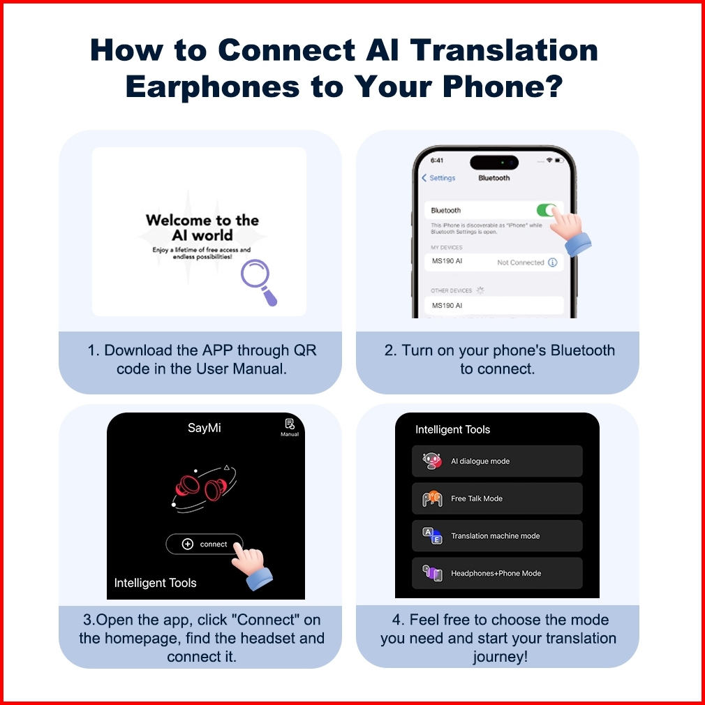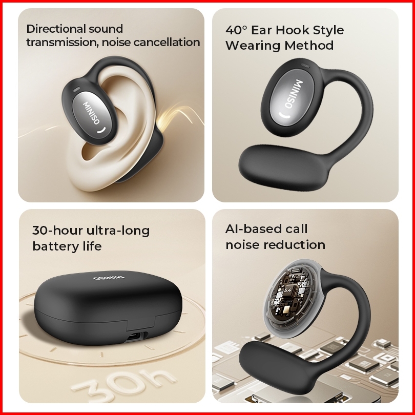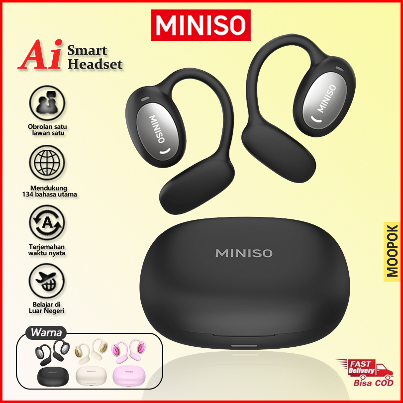 Miniso Ms181 Ows Translating Earbuds Bluetooth Headset Sport Headphones 134 Bahasa Noise Reduction Hifi High-definition