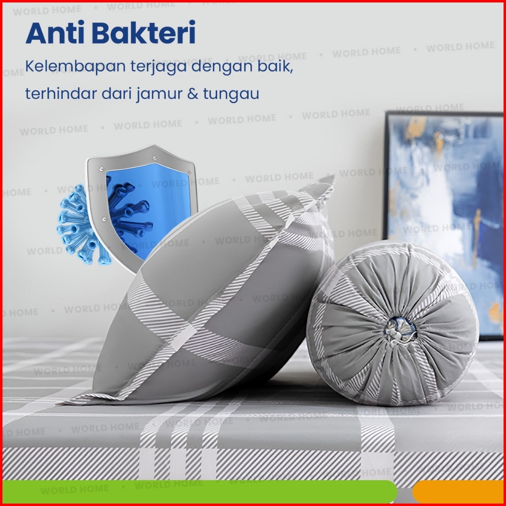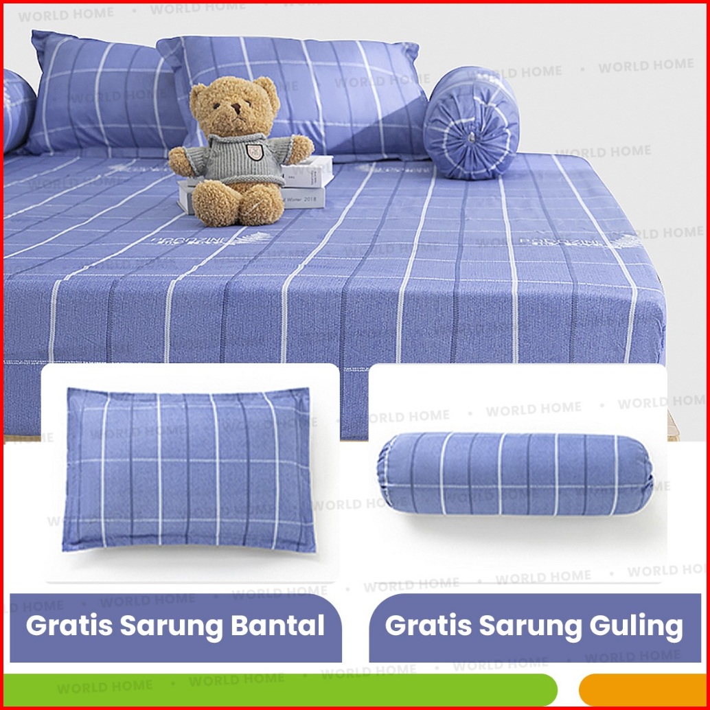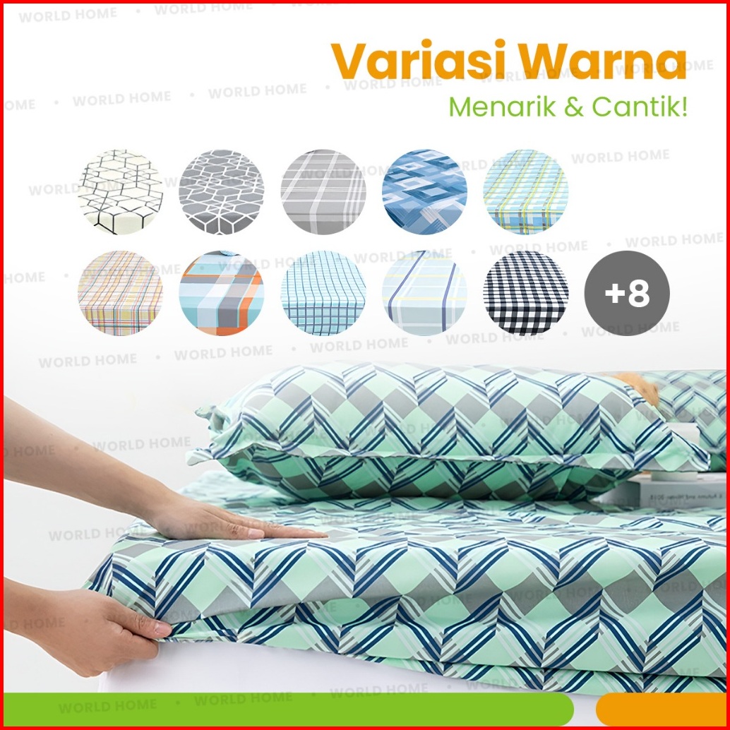 World Home Sprei Set Motif Kq Aesthetic Sprei Kotak Ala Korea Ukuran 160x200cm Free Sarung Bantal Guling