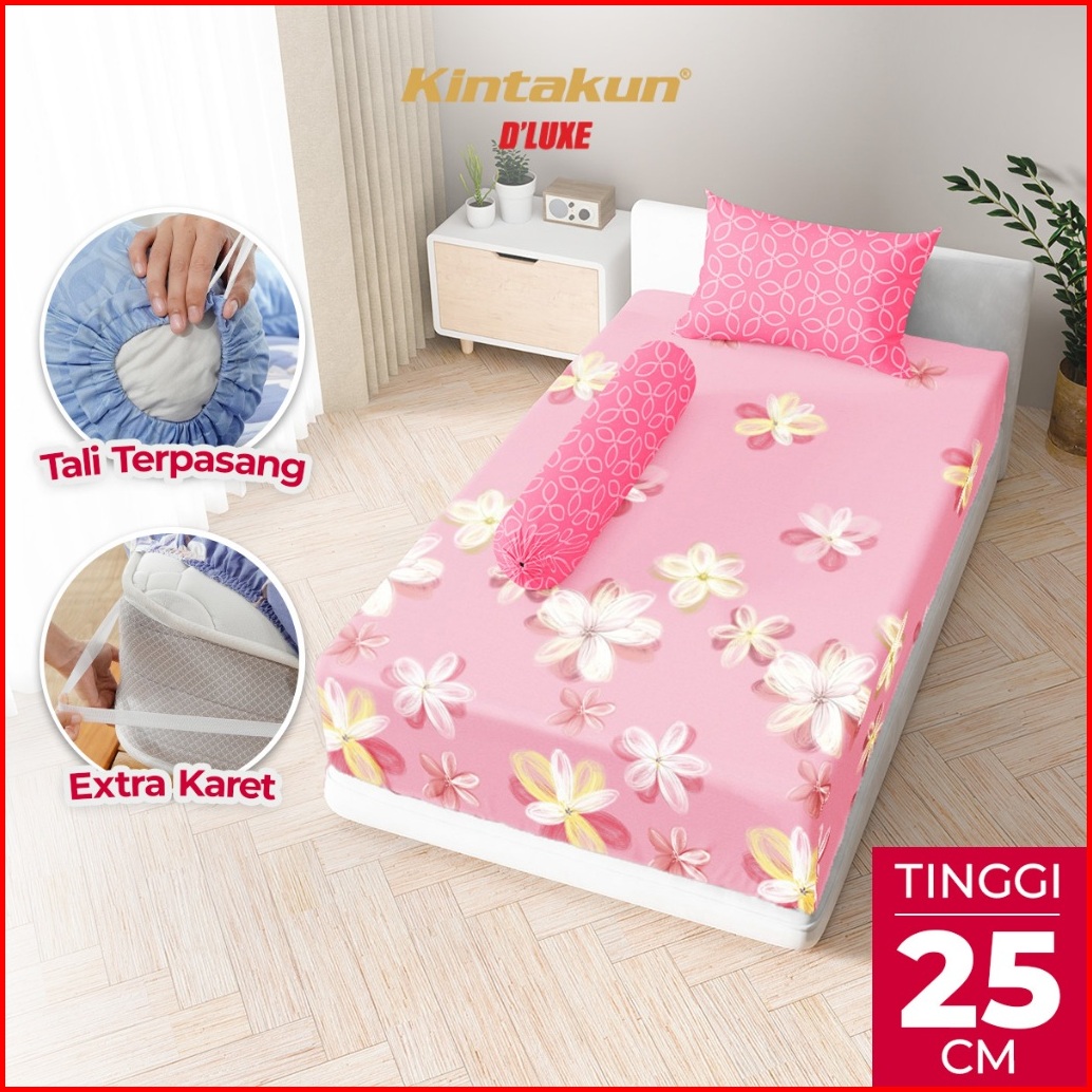 Kintakun Sprei Fitted 90 100 120 Dluxe Carmelia Aesthetic Microtex Tinggi 25 Cm B2