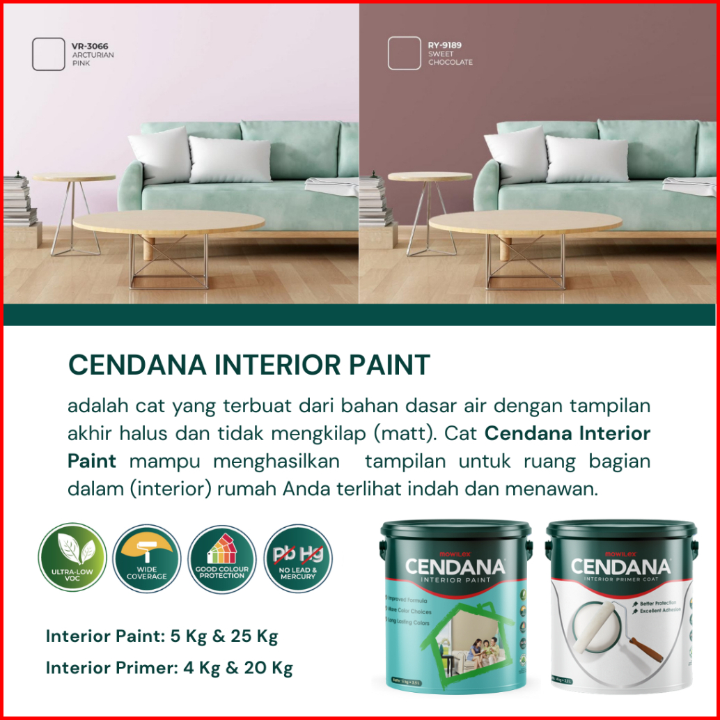 Bundling Cat Cendana Interior Paint 5 Kg Cat Dasar Cendana Primer 4 Kg - Anti Alkali