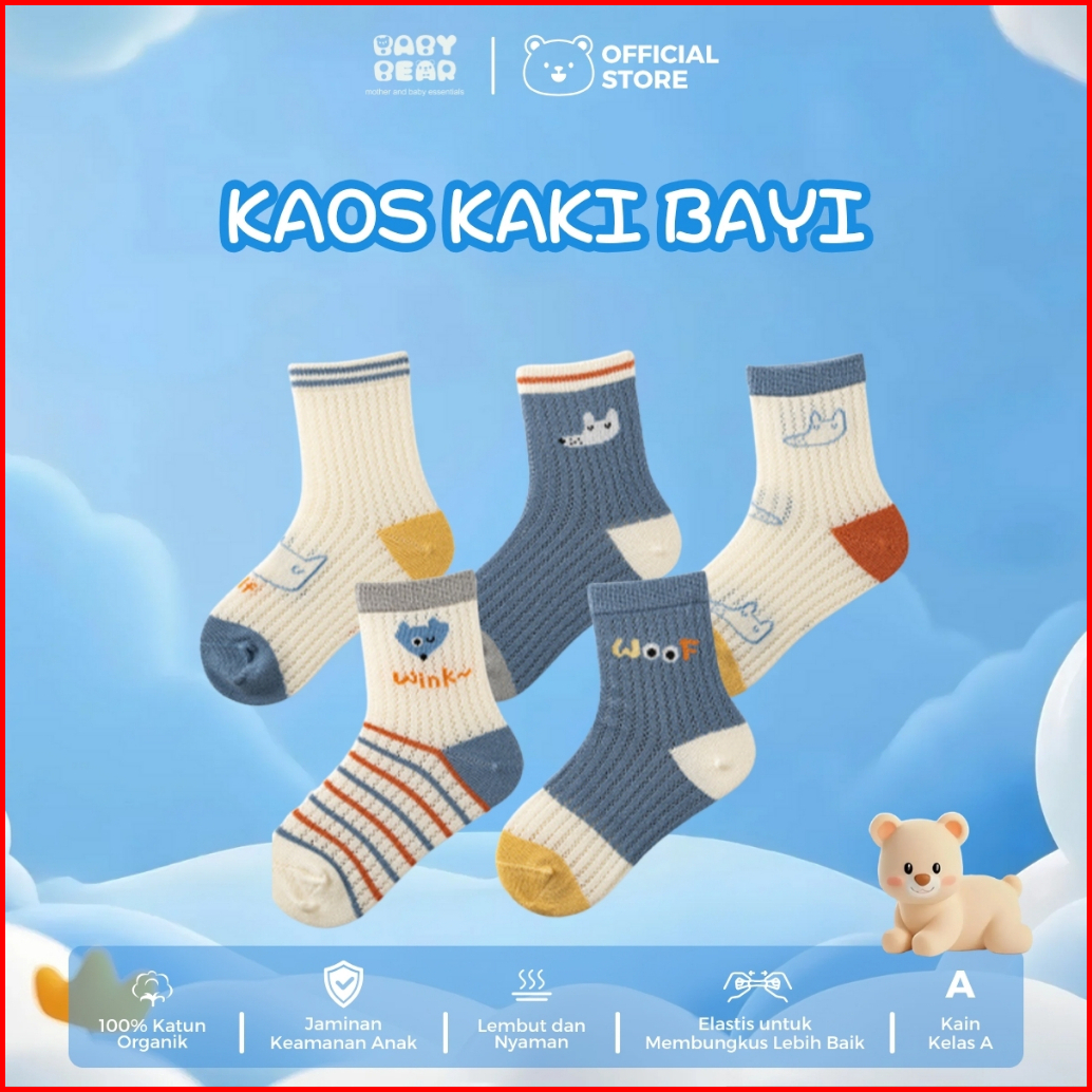 Baby Bear 5-pasang Kaos Kaki Anak Tipis Musim Panas Kids Mesh Socks 5 Pairs