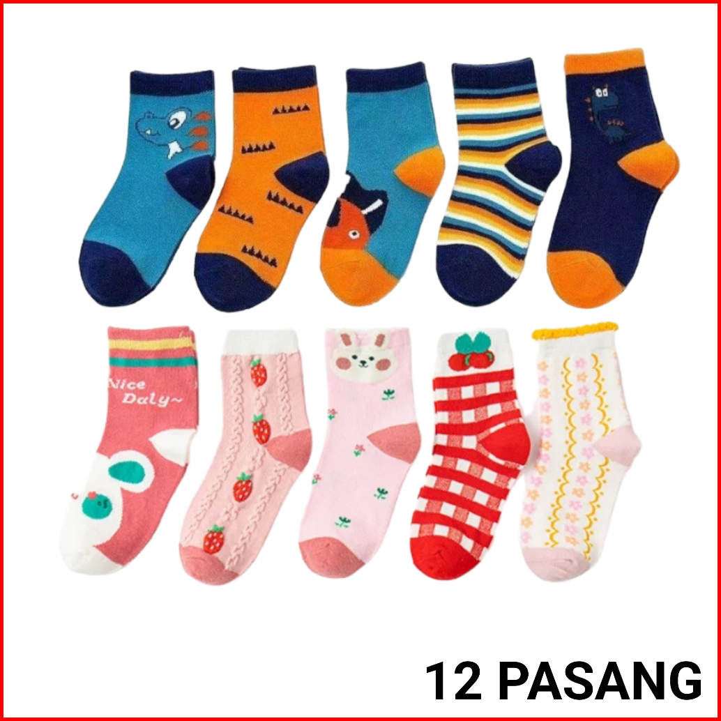 12 Pasang Kaos Kaki Tk Dan Sd Varian Motif Randomm