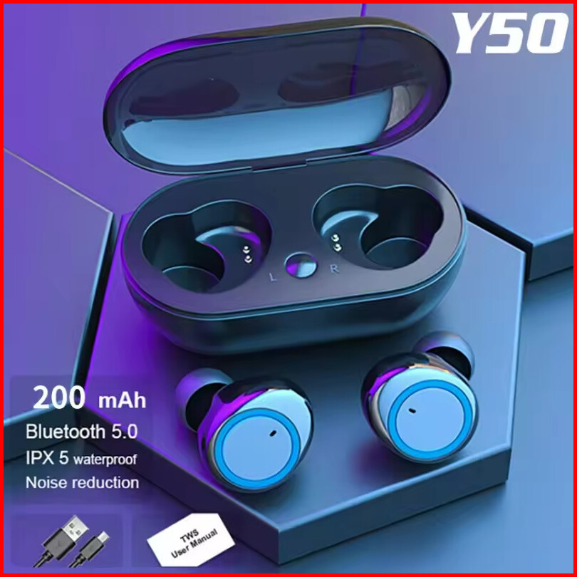 Y50 Tws Headphone Nirkabel Earphone Olahraga Headset Gaming Bluetooth Mikrofon Earbud Nirkabel Untuk Ponsel Mall Inline