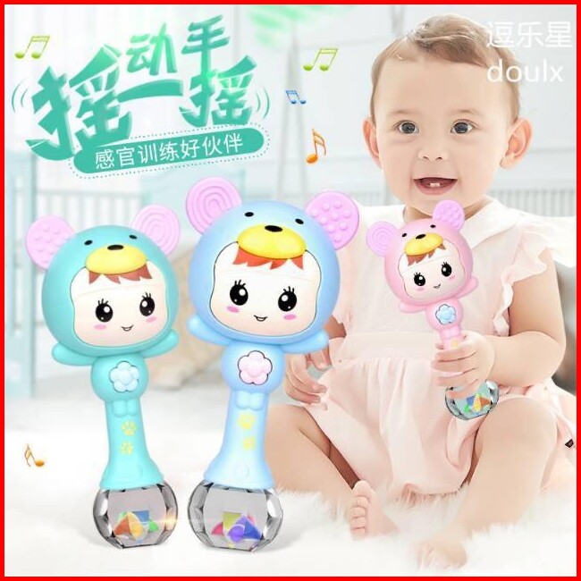 Mainan Bayi Tongkat Rattle Teether Musik Lampu Kelap Kelip