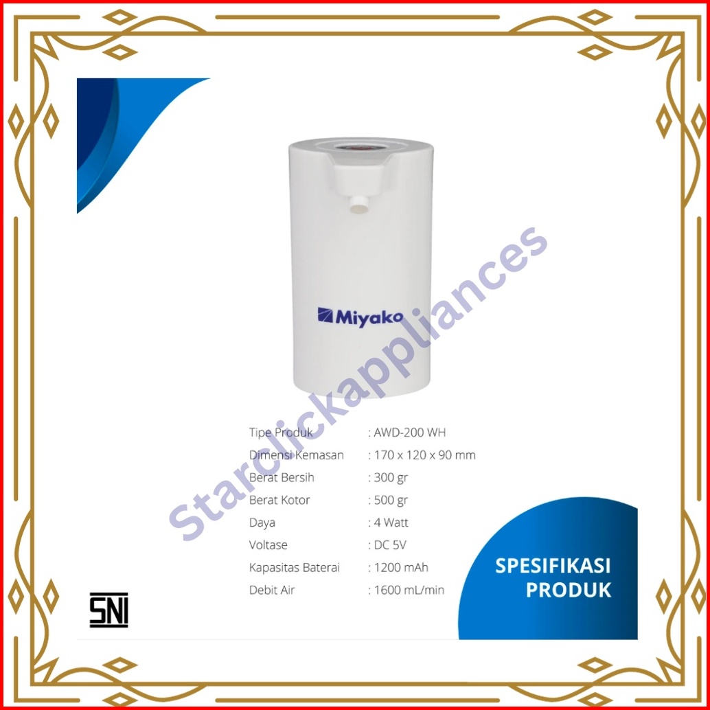 Miyako Pompa Air Galon Elektrik Pompa Galon Otomatis Rechargeable Awd 200 Awd-200 Awd200 Garansi Resmi