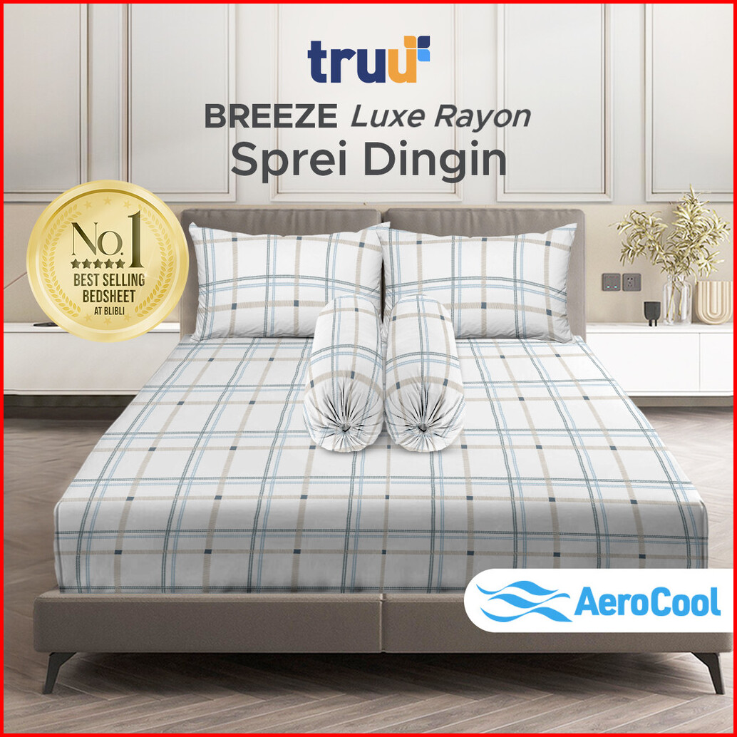 Truu Breeze Luxe Rayon Sprei Urban Grid Beige Tr.trr029 120 160 180 200 Tinggi 30 40cm Sensasi Dingin Dengan Aerocool In