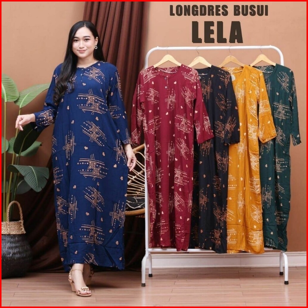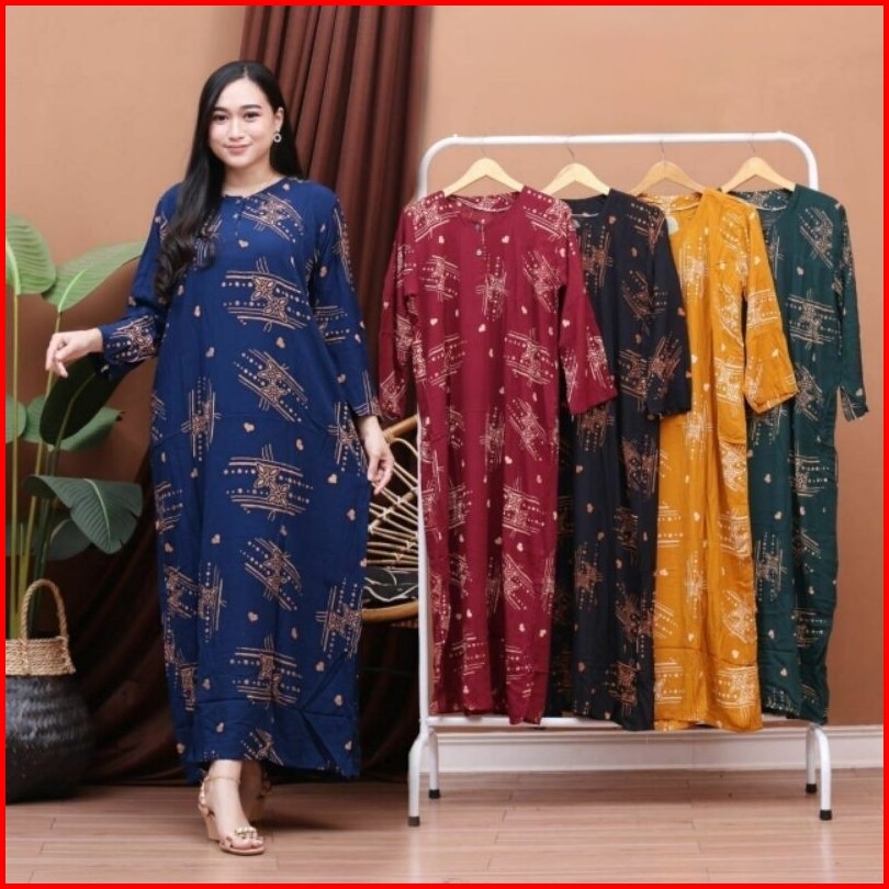 Daster Longdress Bahan Rayon Lengan Panjang Kancing Depan Busui Bumil Murah Adem
