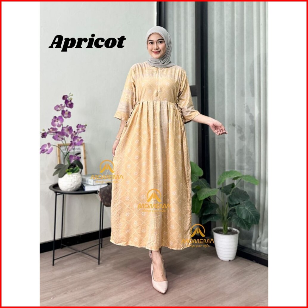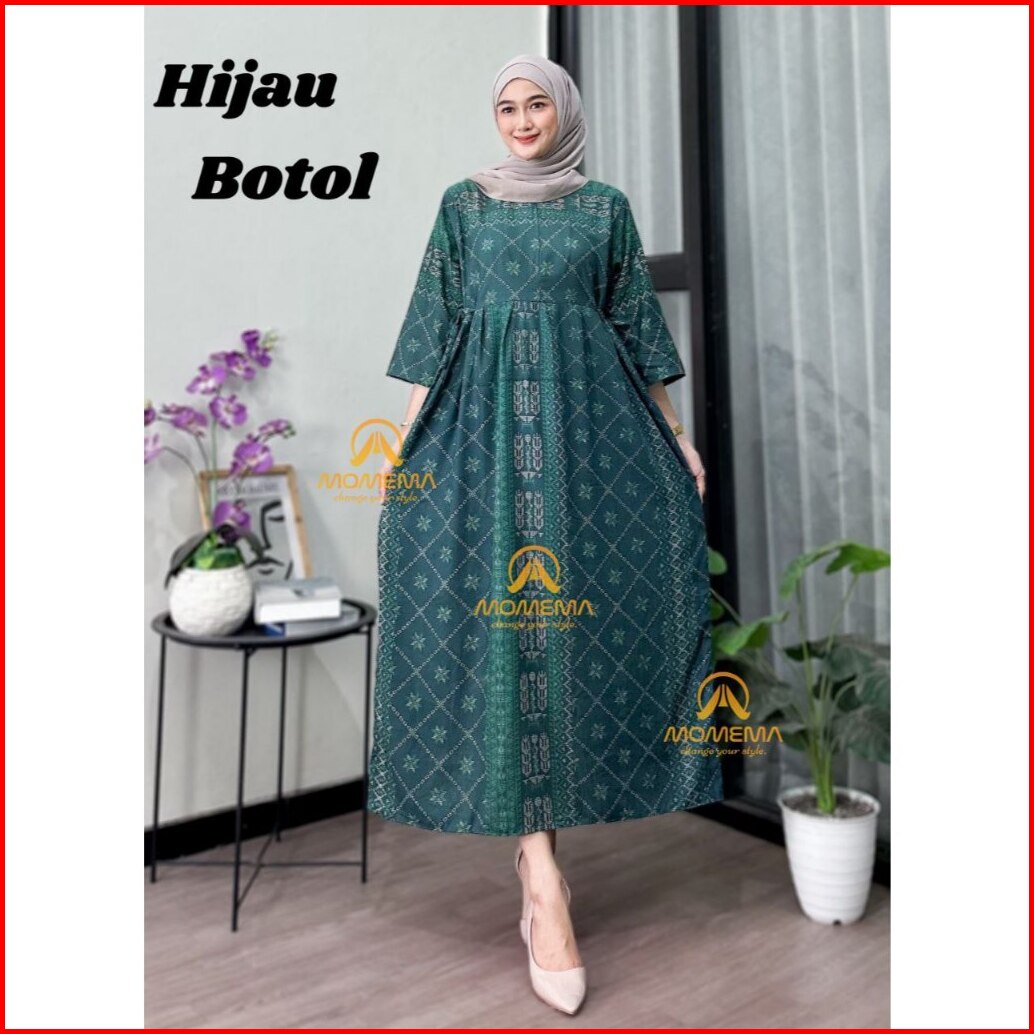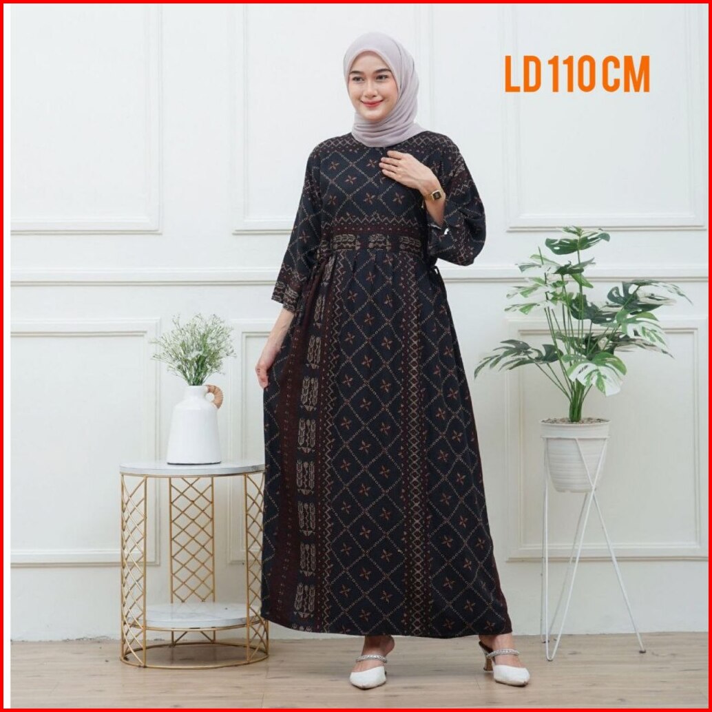 Momema Fashion - Dress Chibi Burgundy Motif Etnik Lengan 3 4 Busui Rayon Premium Ld 110 Dan Ld 120