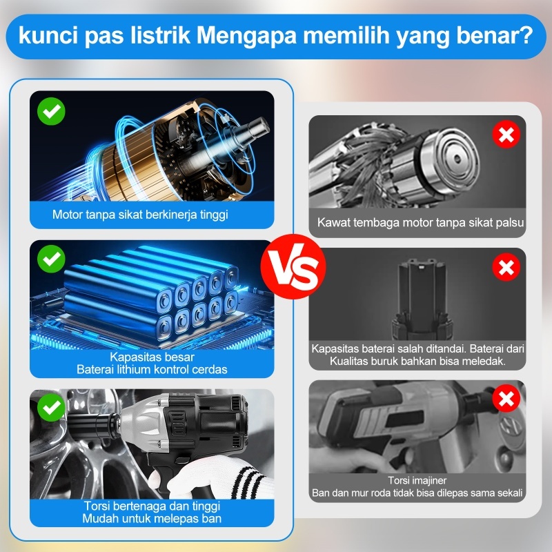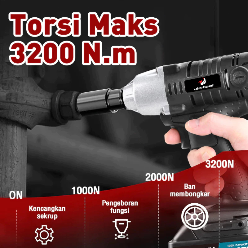 Impact Wrench Cordless Diskoom Baterai Brushless 3200nm Torsi Tinggi Membuka Baut Set Lengkap