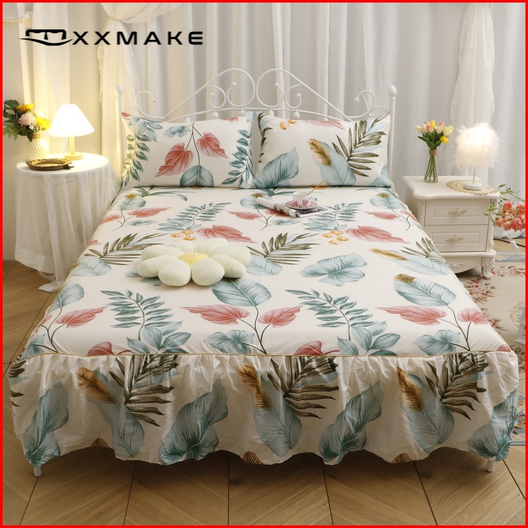 Xxmake Sprei Rumbai 90 120 160 180 4 Ukuran Seprei Bed Cover Bedskirt Pola Daun