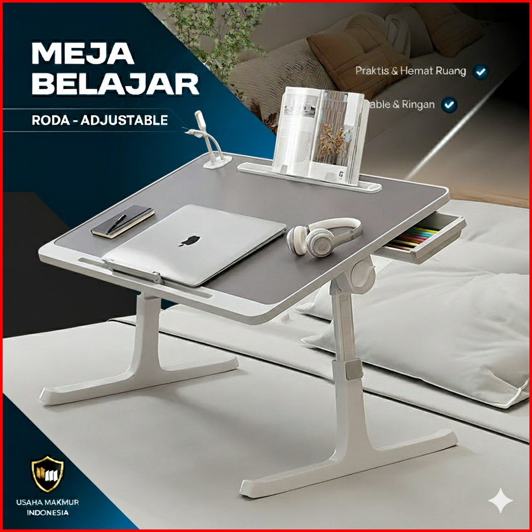 Meja Laptop Portable Adjustable Belajar Bed Table With Port Usb Serbaguna Folding Computer Desk