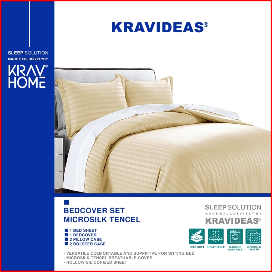 Krav Ideas Home - Sprei Bedcover 1 Set Microtencel - Motif Polos Salur - Variant Ukuran
