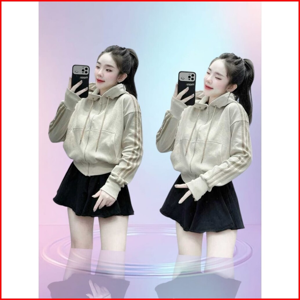 Vallina Outfit - Puel Zip Hoodie Outerwear Jaket Zipper Wanita Semi Crop Fleece Premium Korean Style