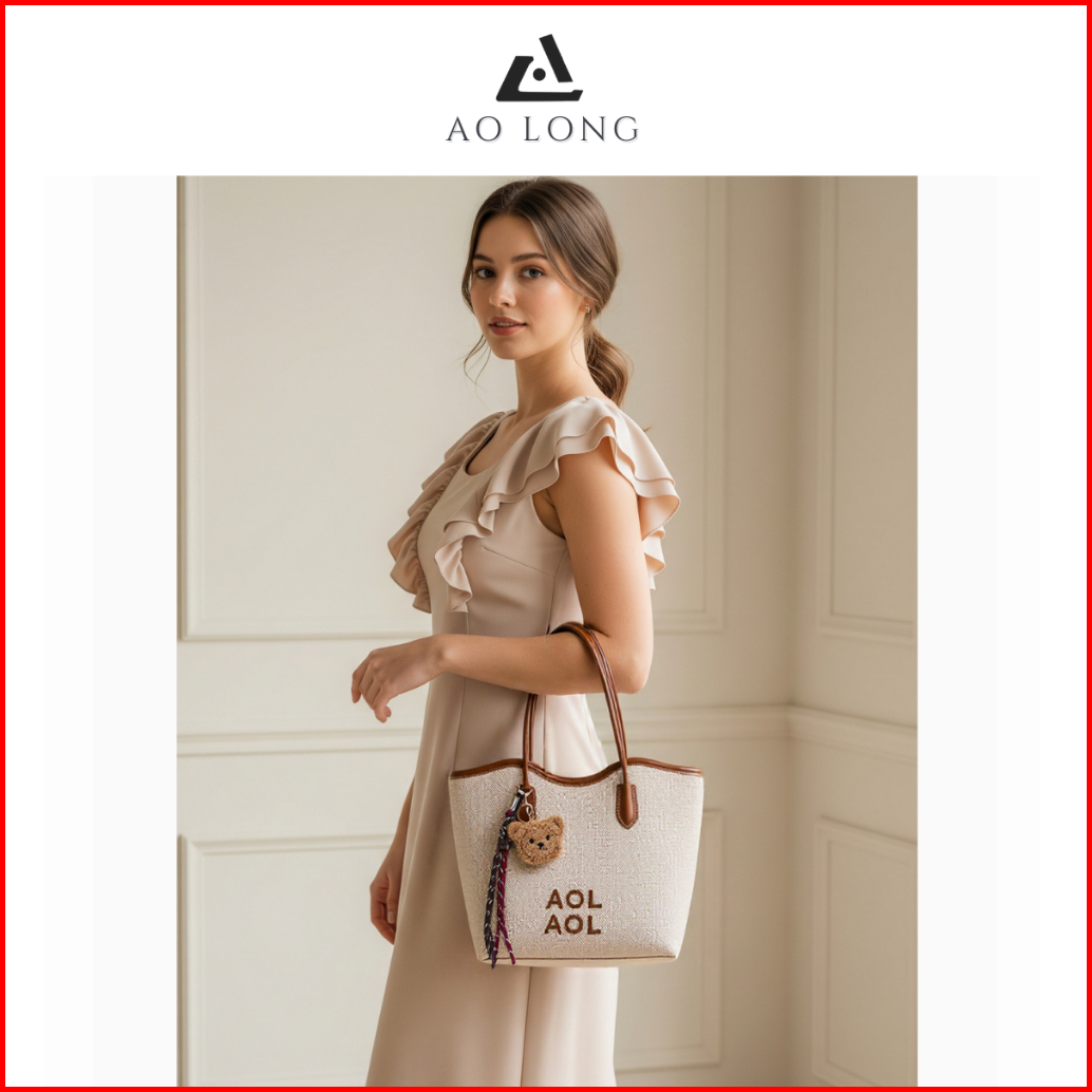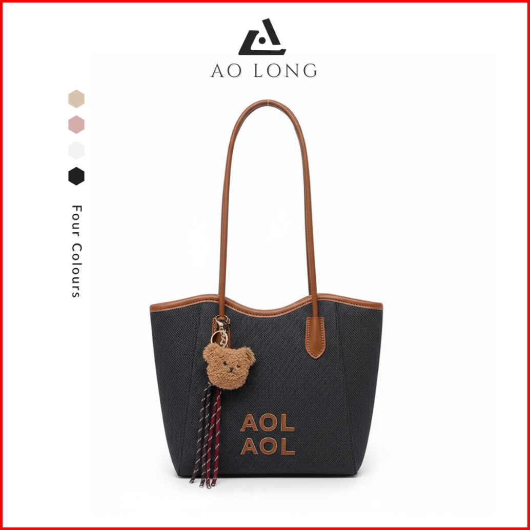 Aolong Revina 0837 - Tas Bahu Totebag Wanita Terbaru Lucu Bahan Kanvas Rajut