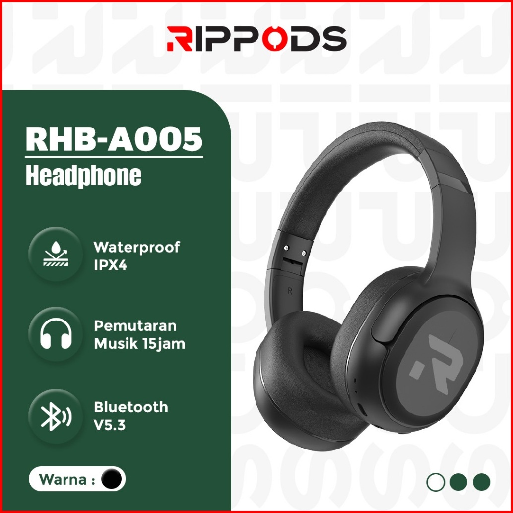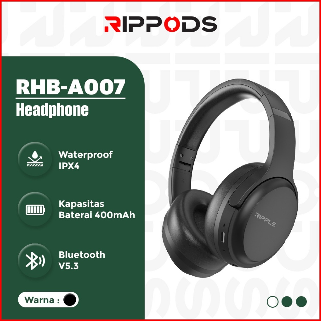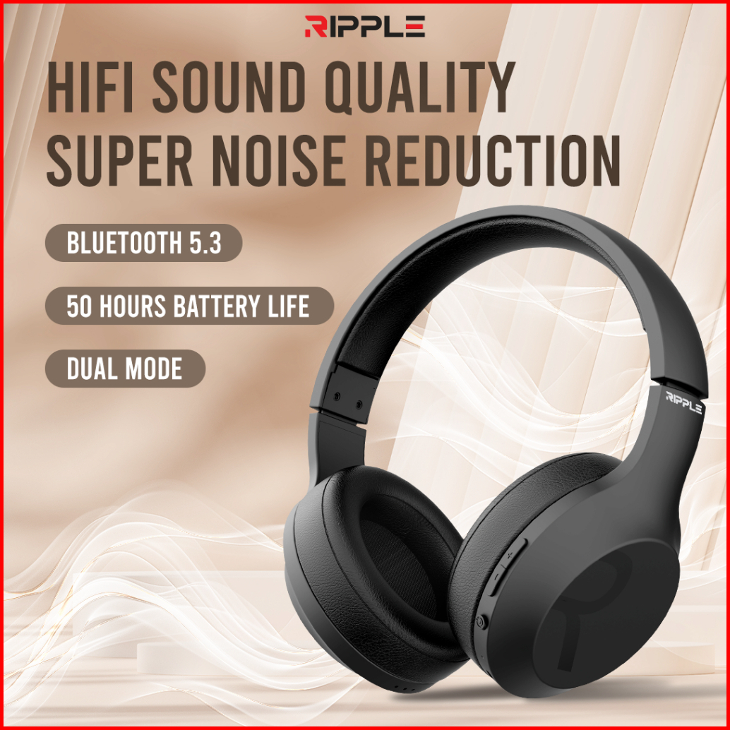 Rippods Headphone Bluetooth Bass Noise Cancelling Wireless Headset Gaming Black