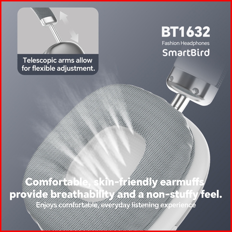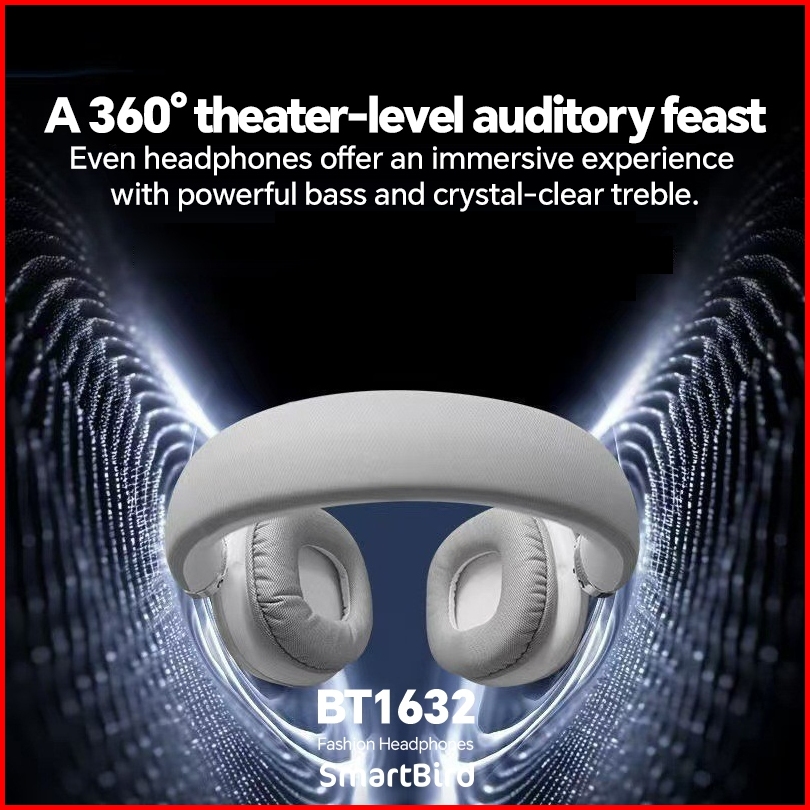 Smartbird Headphone Bt1632 Stylish Cool Bluetooth 5.3 Hifi Stereo Sound Noise Reduction Wireless Headset Built-in Mic Mu