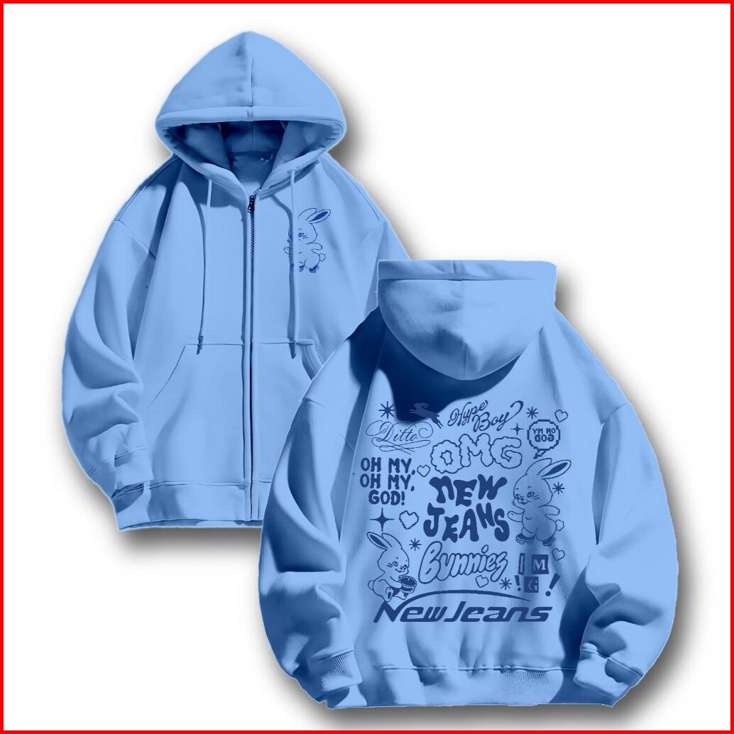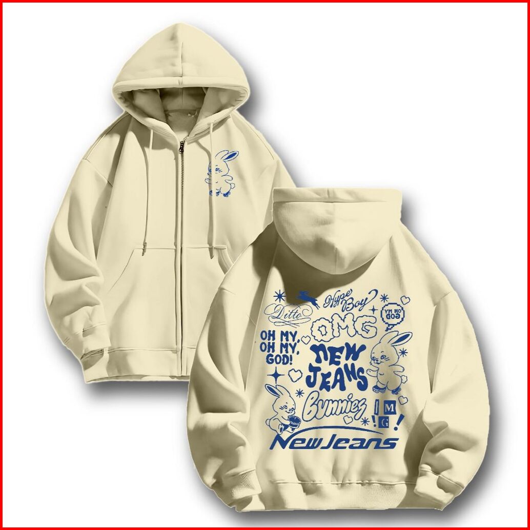 Hoodie Jaketwanita Zipper Jyb Oversize Bunnies New Jeans Sablon Size M-xxl Pria Wanita