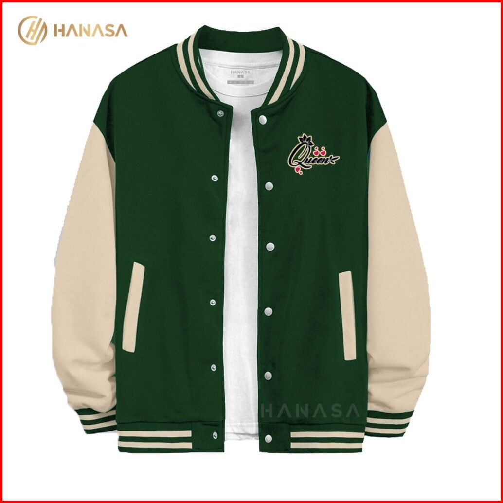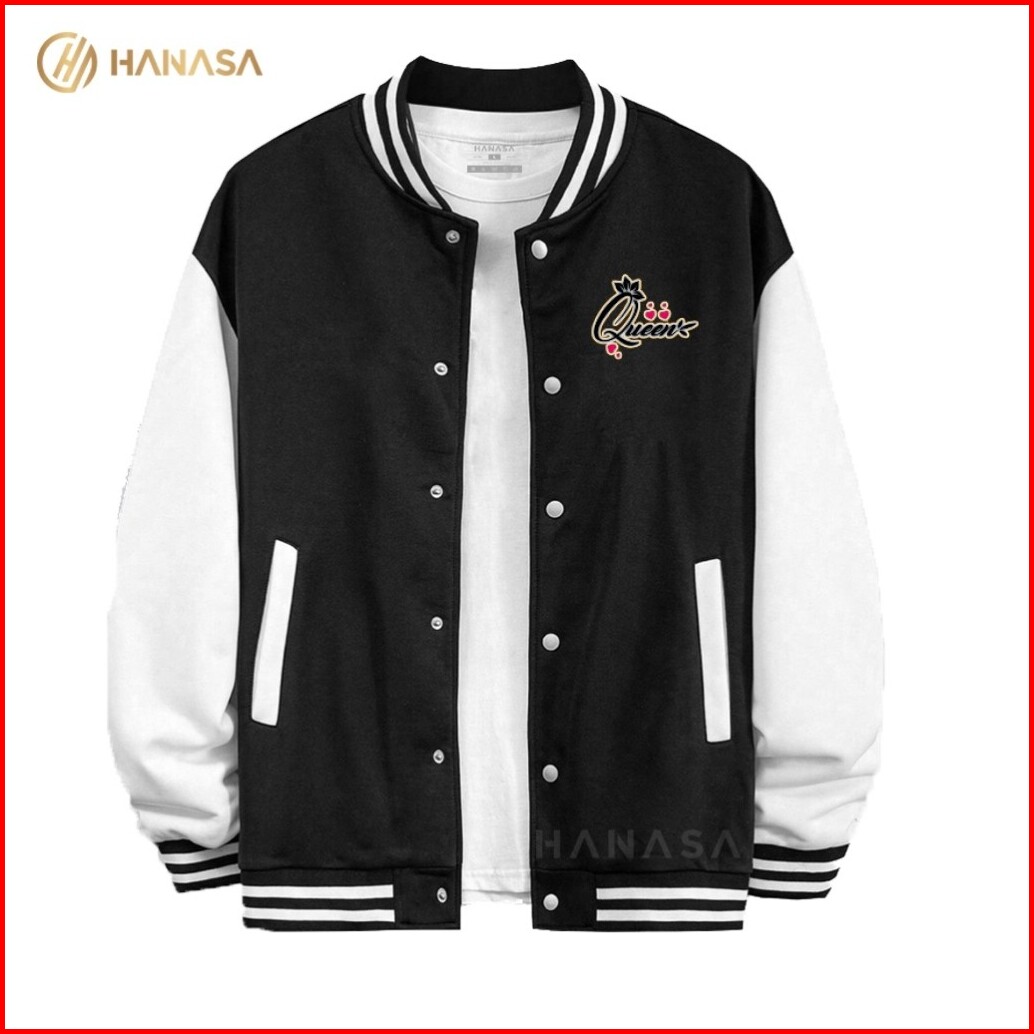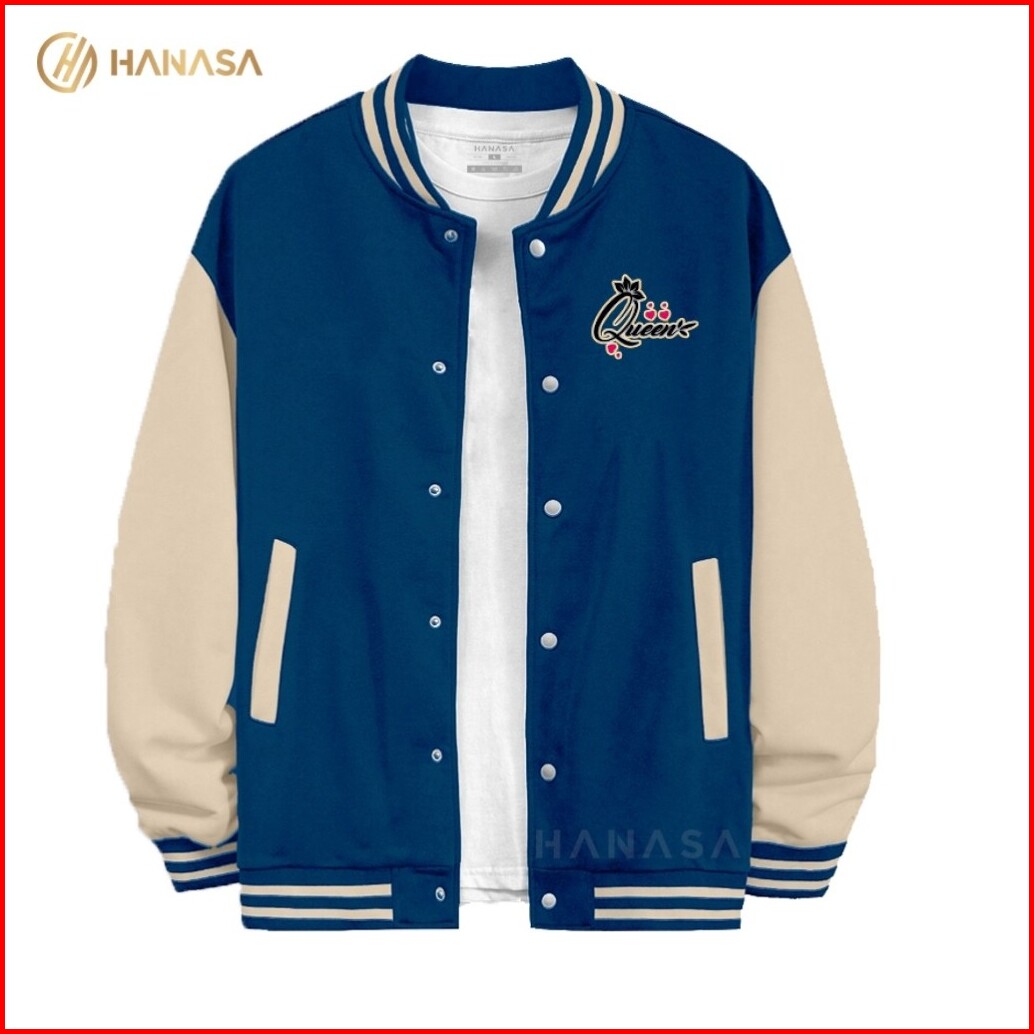 Hanasa Jaket Varsity Wanita Quen Logo Jaket Varsity Pria Jaket Baseball Varsity