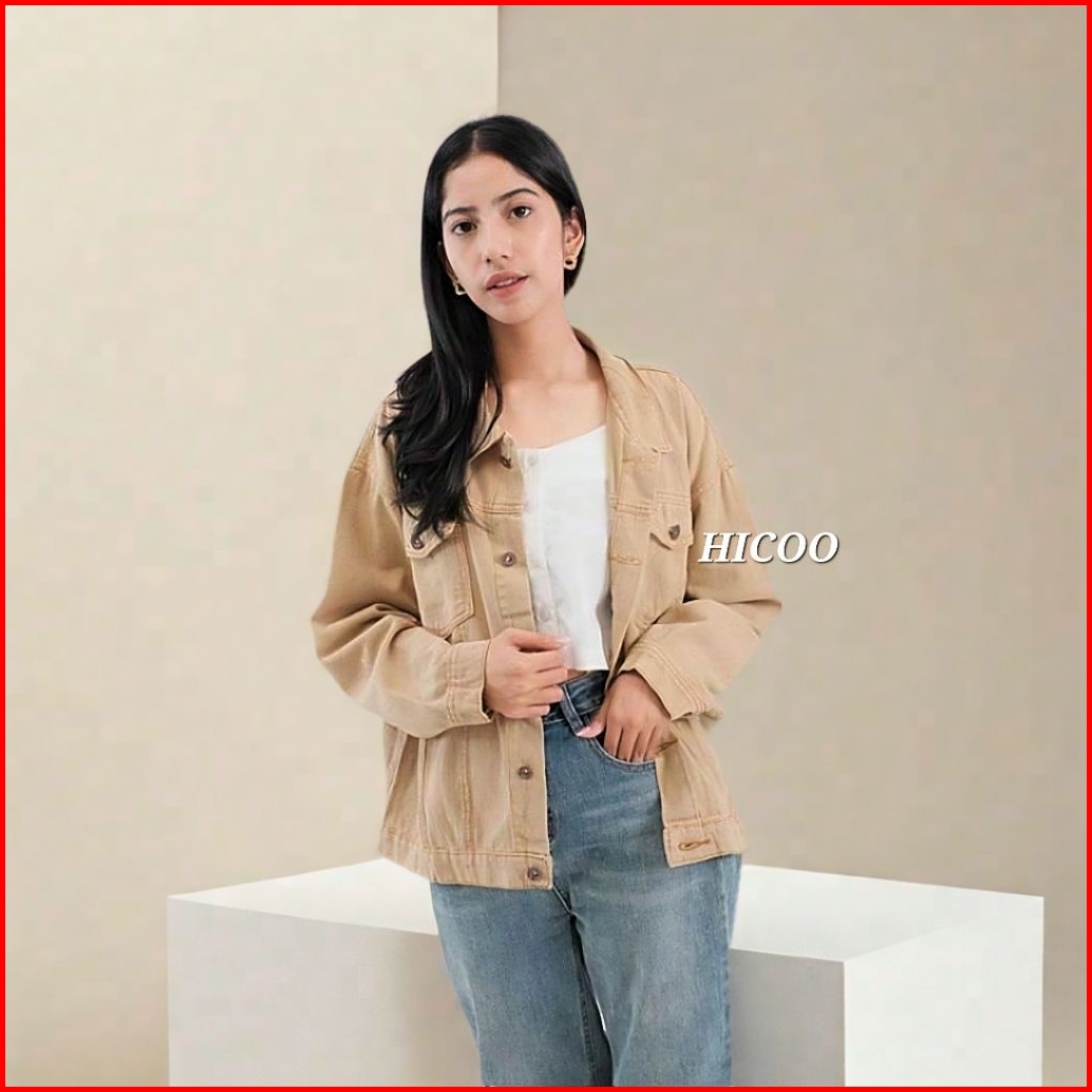 Eos Jaket Jeans Wanita Casual Oversize Denim Retro