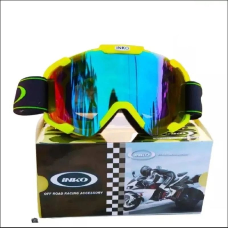 kaca mata cross / goggle inko yellow pelangi rainbow / gogle kross Kaca mata helm Cross Helm Motor Cross kaca helm cross