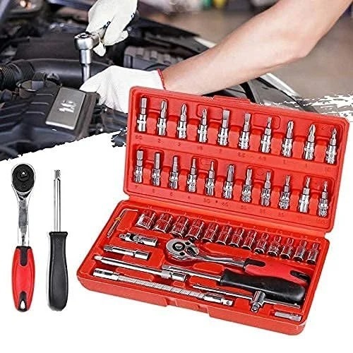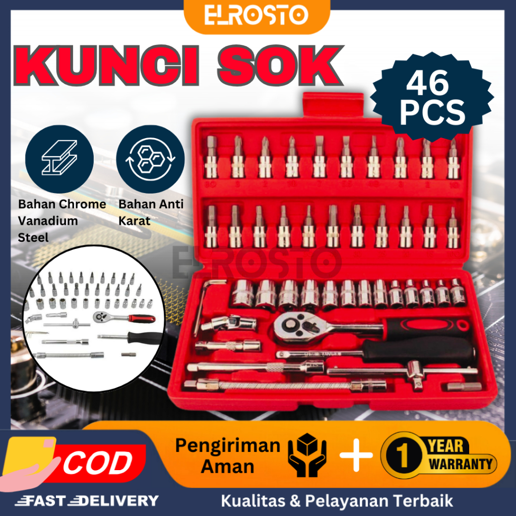 Set Kunci 46 Pcs Elrosto Sok Shock Mobil Motor Lengkap Pas Ring Socket Tool Kit