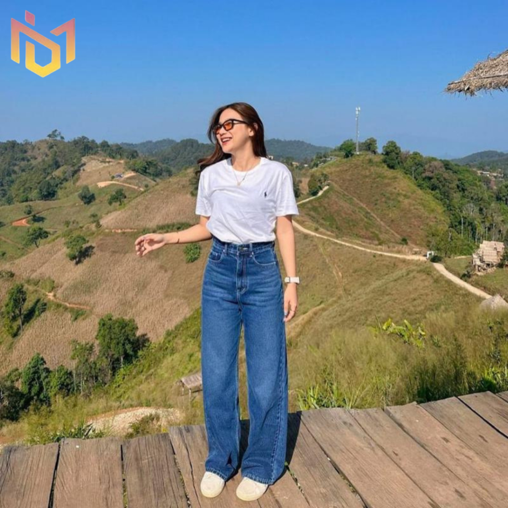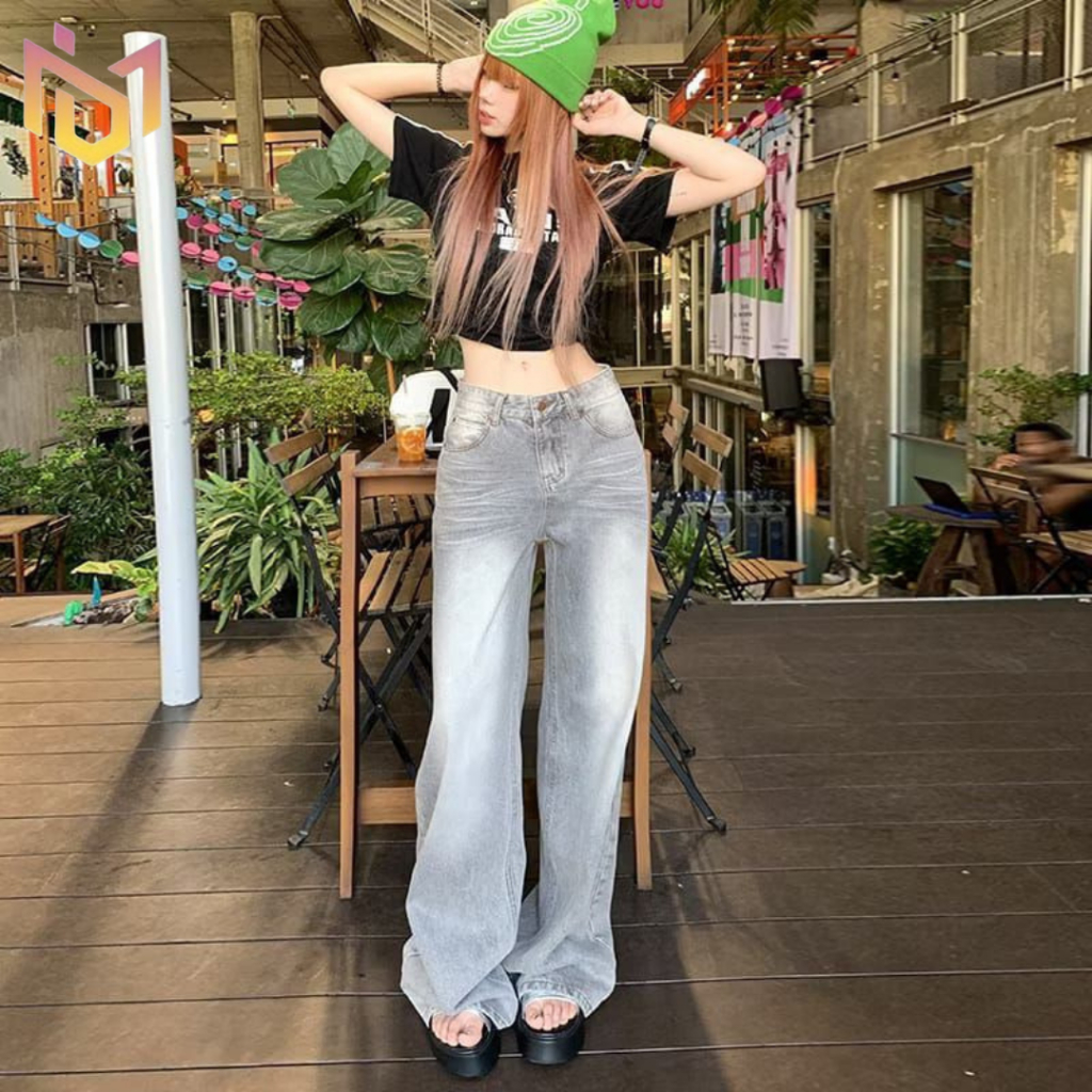 Celana Baggy Skena Wanita Kulot Jeans Gombrang High Waist Korean Style Whisker Retro Kekinian 27-38
