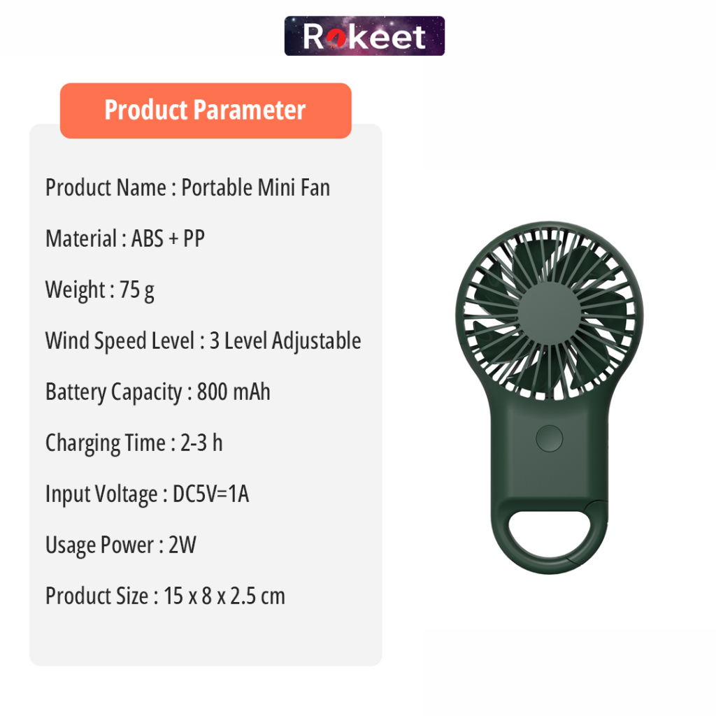 Kipas Angin Rokeet Mini Portable Genggam Gantung Rechargeable Exquisite