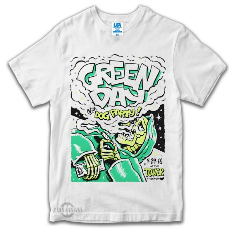 Kaos GREENDAY Dog party PUTIH Premium tshirt green day pop punk