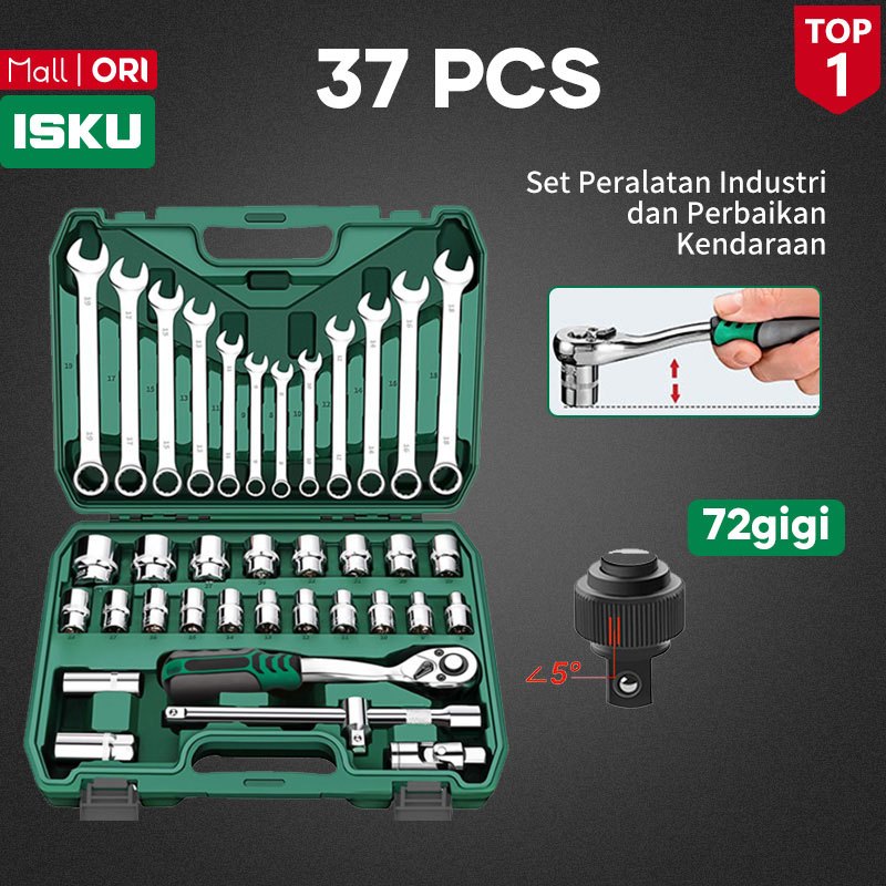 Tool Kit Set Alat Isku Kunci Sok 37pcs Kunci Pas 12pcs 819mm 12 Mata Sok Lengkap Ratchet