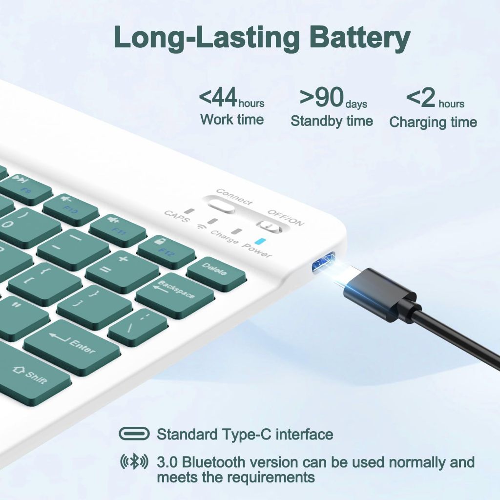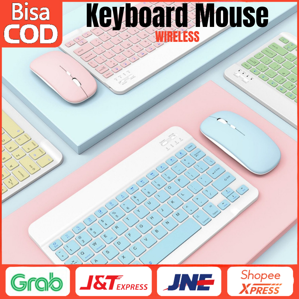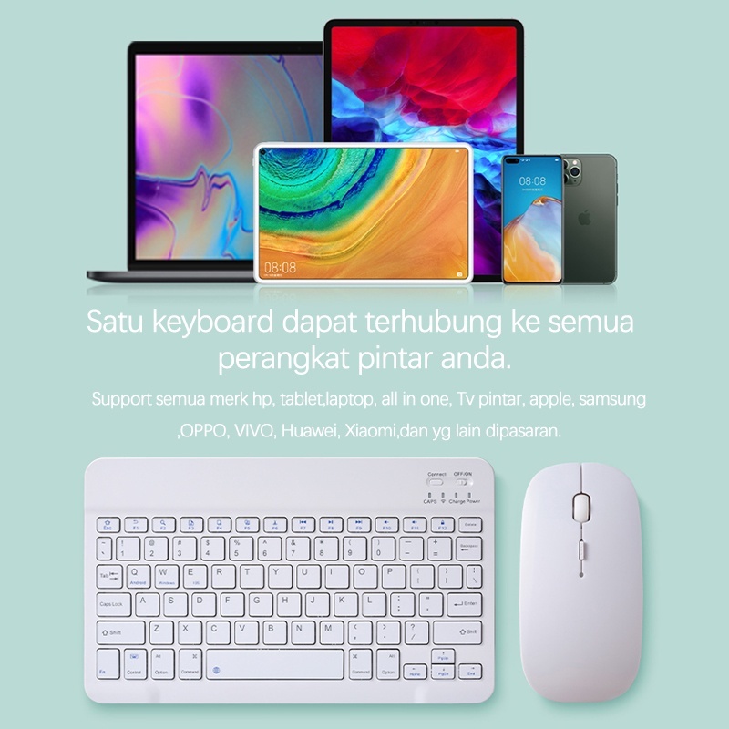 Keyboard Mouse Set Wireless Bluetooth 10 Inch Portable Colorful Untuk Laptop Pc Tablet Phone