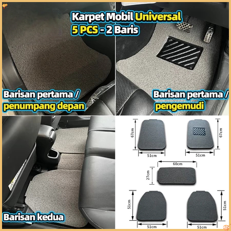 AOYING Karpet Mobil 5 Pcs 2 Baris Universal - Mie Bihun PVC - Ketebalan 16MM/ Universal bisa diaplikasikan ke semua mobi