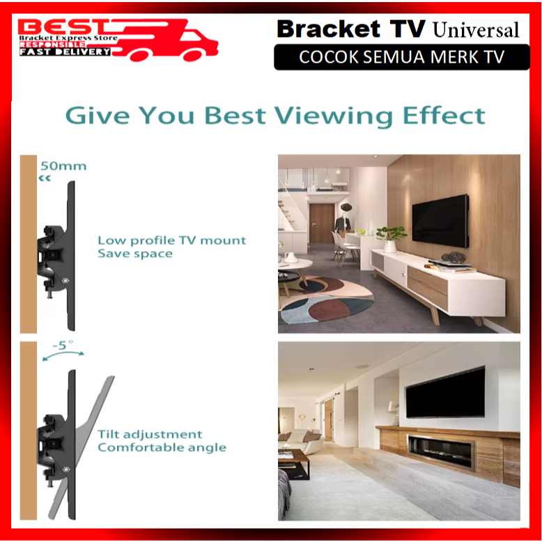 Bracket Tv Led Lcd Universal Bisa Nunduk 14 Hingga 43 Inch Full Besi