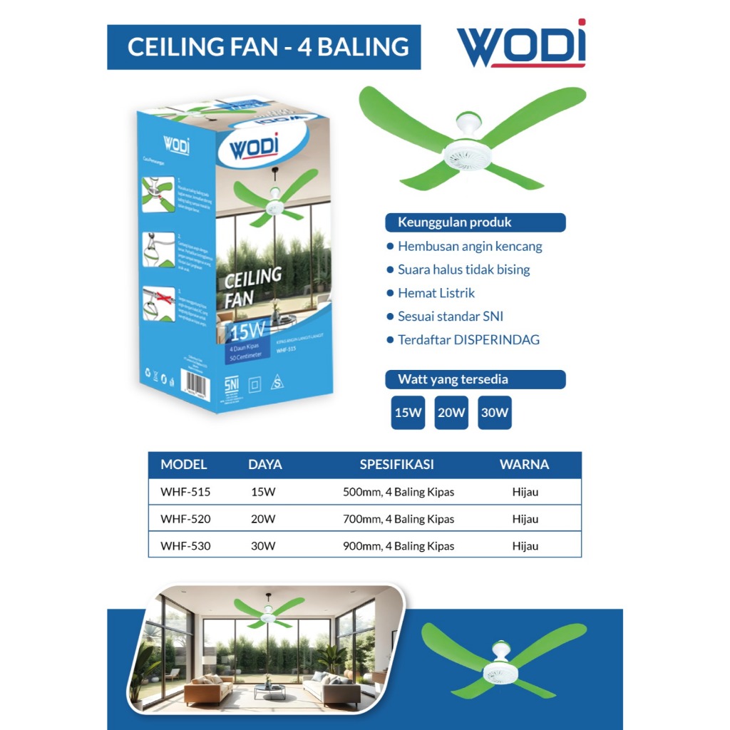 Kipas Angin Gantung Plafon Helifan Mini 15 500mm Wodi