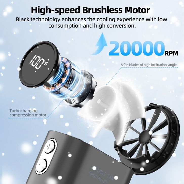 Goojodoq GFS007 Mini kipas 100 Gear Wind High-speed kipas angin Adjustable Turbo kipas tangan