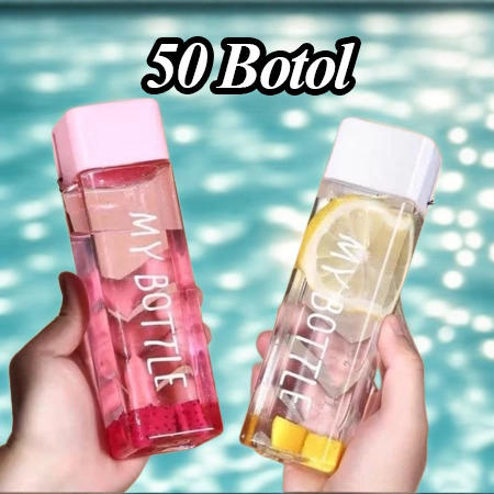 50 pcs My Bottle Kotak 500ml BPA FREE Botol Minum Model Baru Persegi Transparan Infuser water Viral BPA FREE di Banjarma