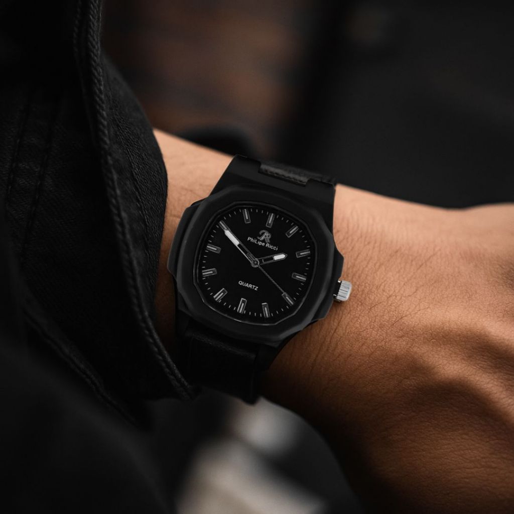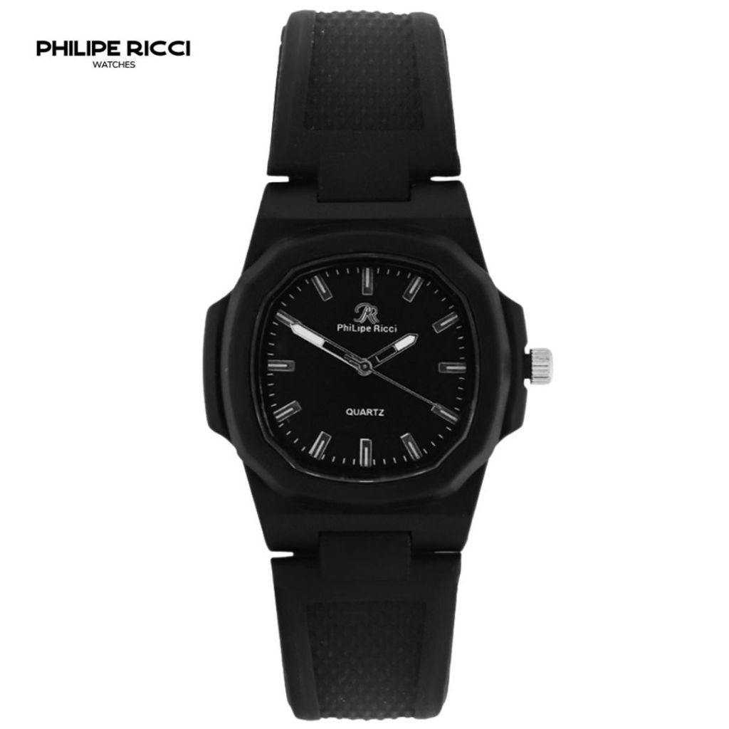 Philipe Ricci Jam Tangan Pria Wanita Unisex Analog Strap Tali Karet Dial Kotak 9065 Rubber Square Watches Free Box