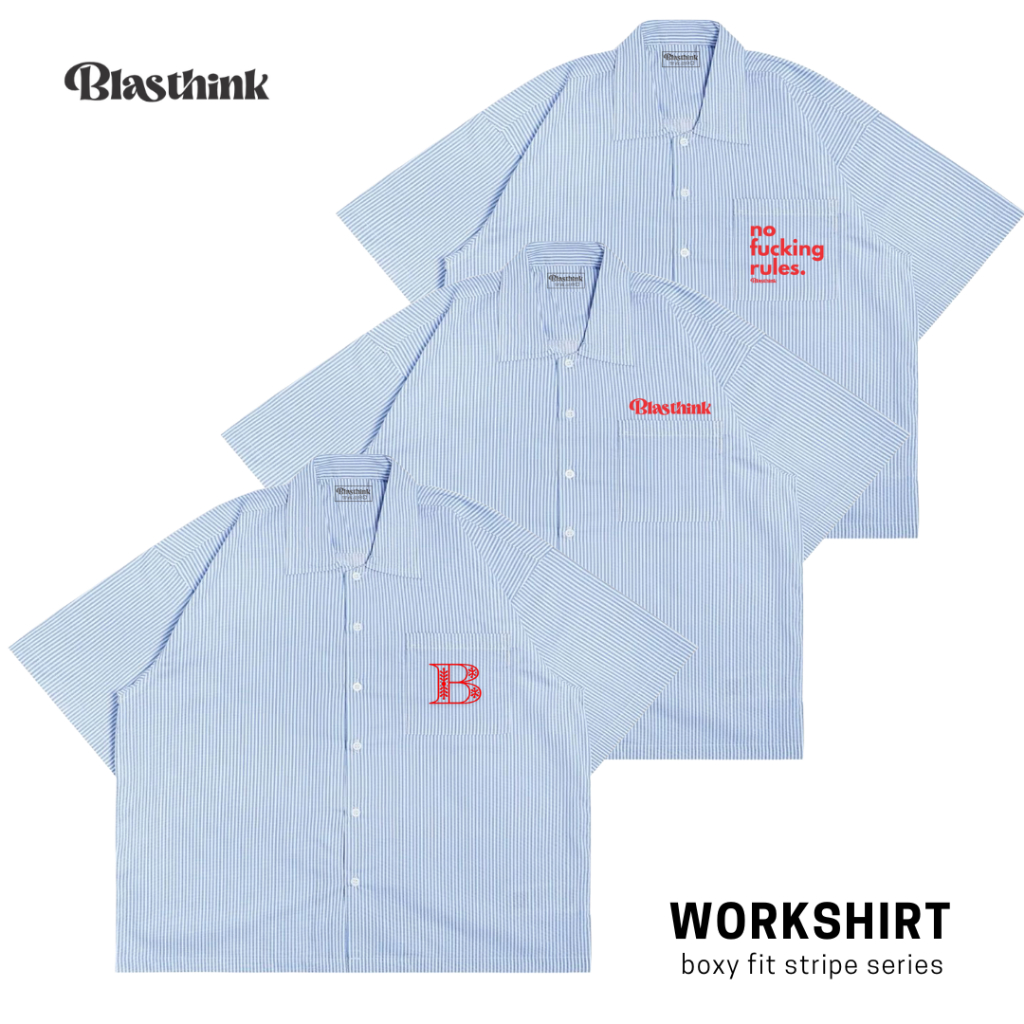 Kemeja Workshirt Stripe Boxy Fit oversize skena Shirt unisex kemeja kerja belang By.BLASTHINK