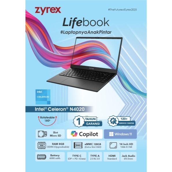 Laptop Zyrex L-Book N4020 8Gb 256Gb Windows 11Pro 14.0 Garansi Resmi