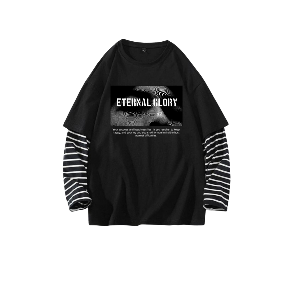ETERNAL Kaos Distro Baju Lengan Panjang Salur Pria Wanita Skena Outfit