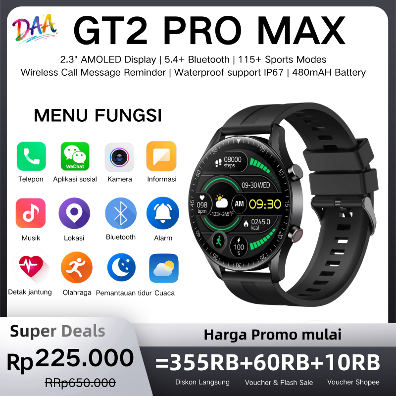 Daa Gt2 Smartwatch Pria Jam Tangan Pria Bluetooth Call Gps Waterproof Sport Modes Android Ios Digital