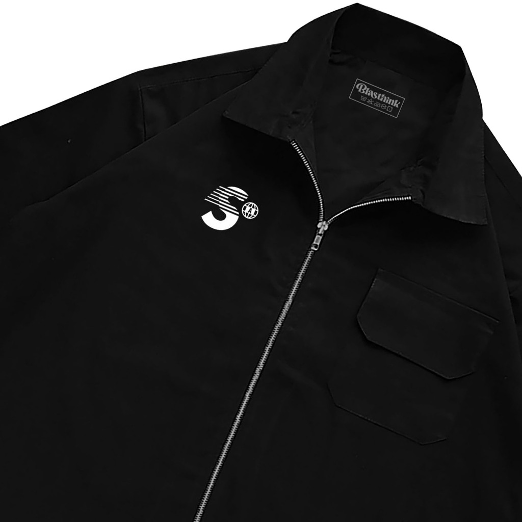 Kemeja Workshirt Boxy Fit Zipper Black Shirt unisex black kemeja skena - By. BLASTHINK