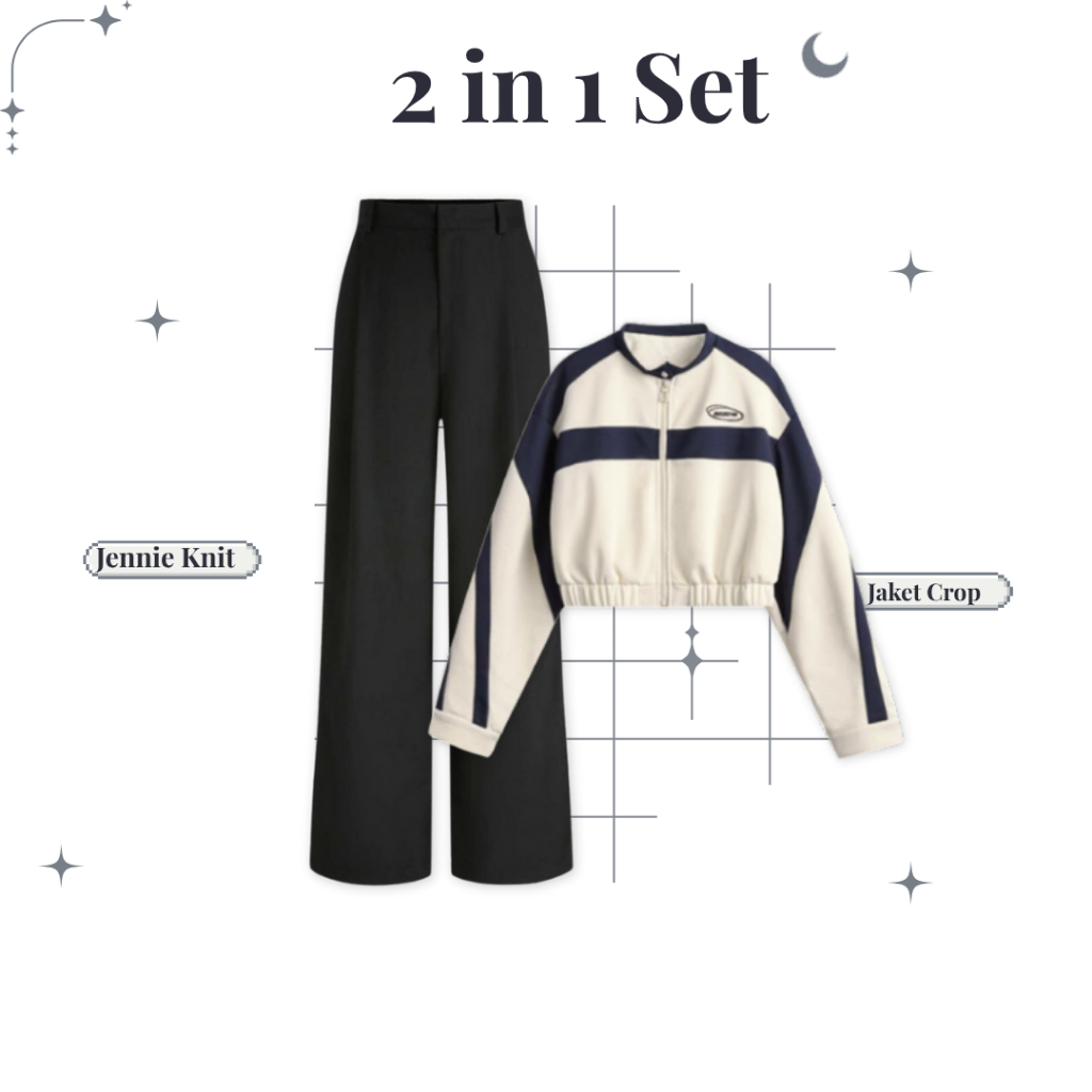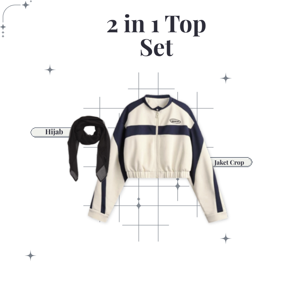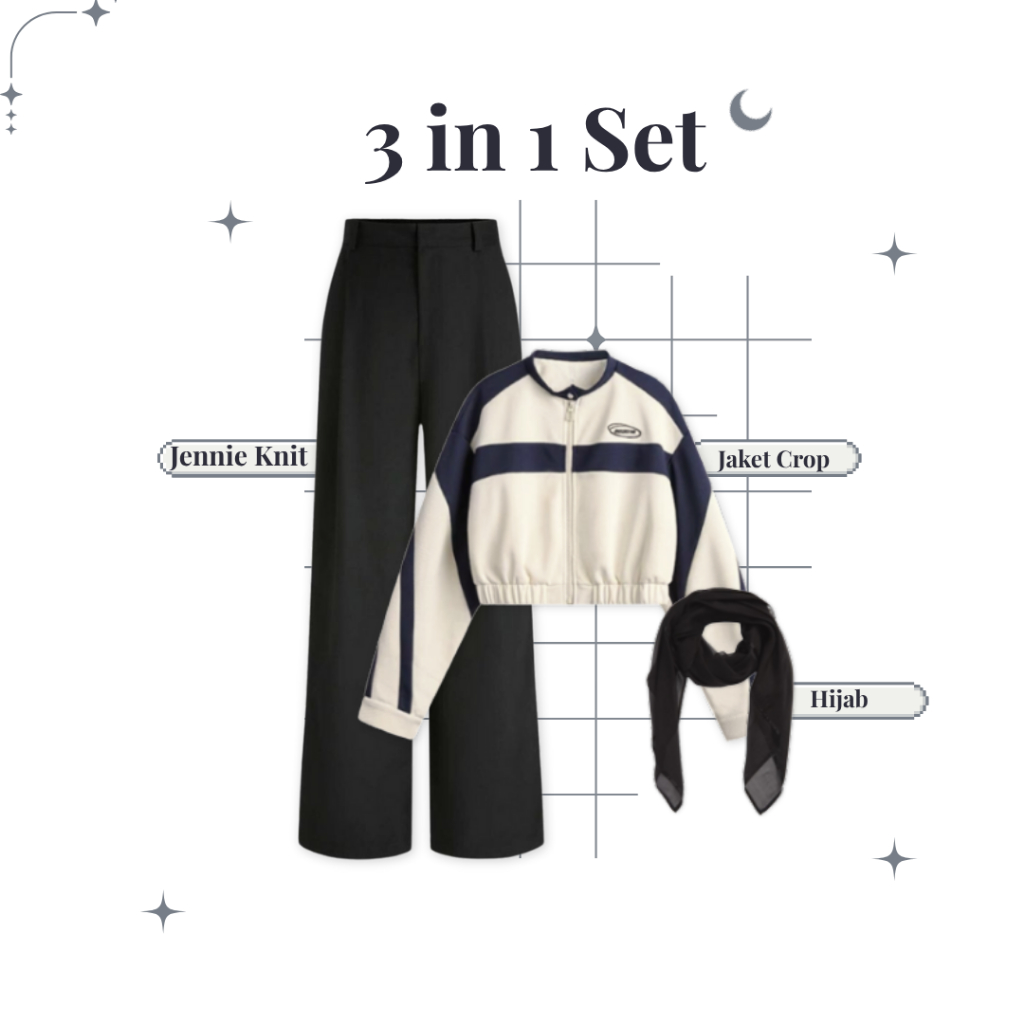 One set Wanita Kekinian || Atasan Crop Wanita + Celana Wanita + Hijab Segi Empat || Skena Outfit Wanita- AT044