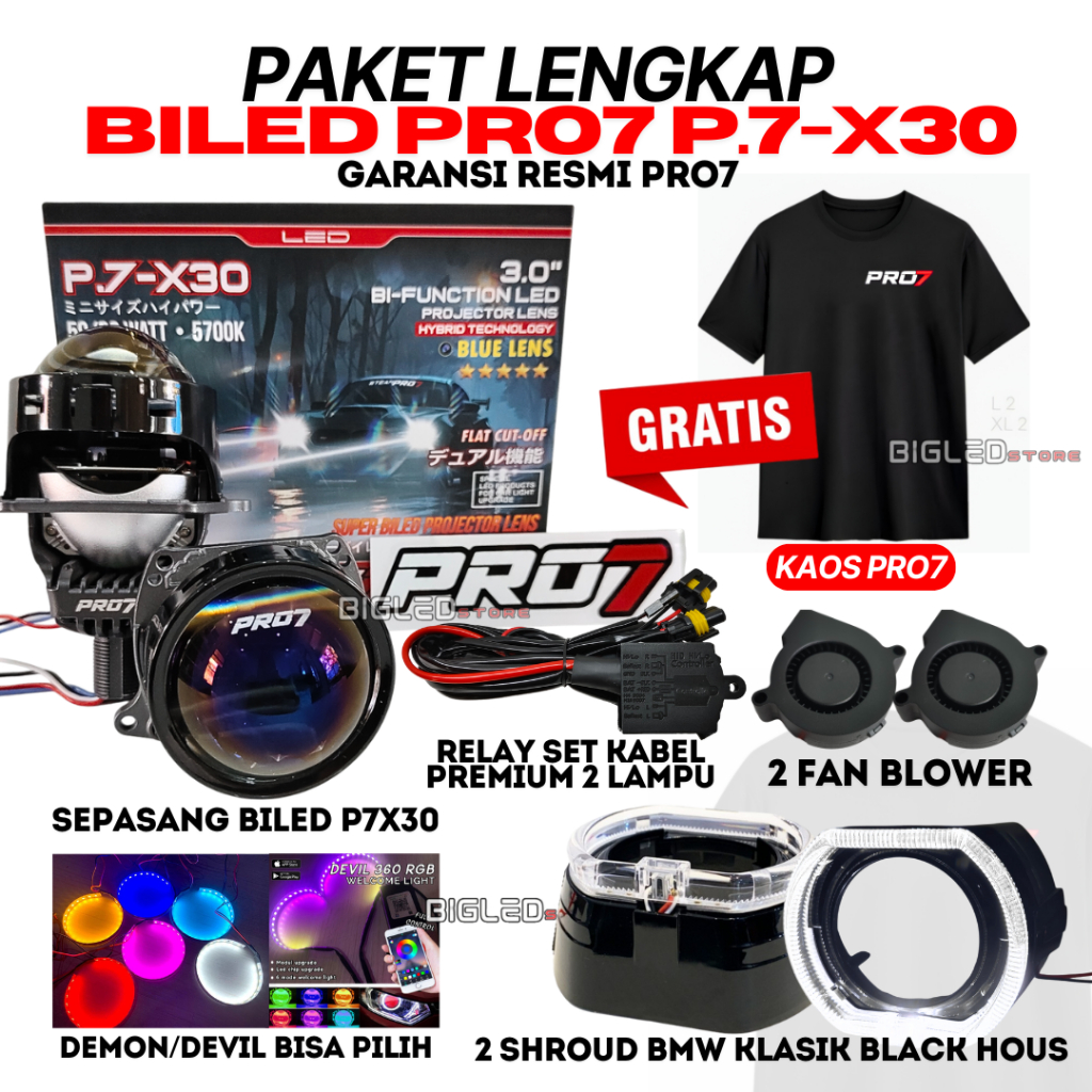 [GRATIS EXTRA KAOS] PAKET HEMAT Lampu Biled Projector Headlamp Pro7 PRO 7 P7X30 P.7-X30 P7-X30 P.7X30 P7 X30 50 60W 3 in