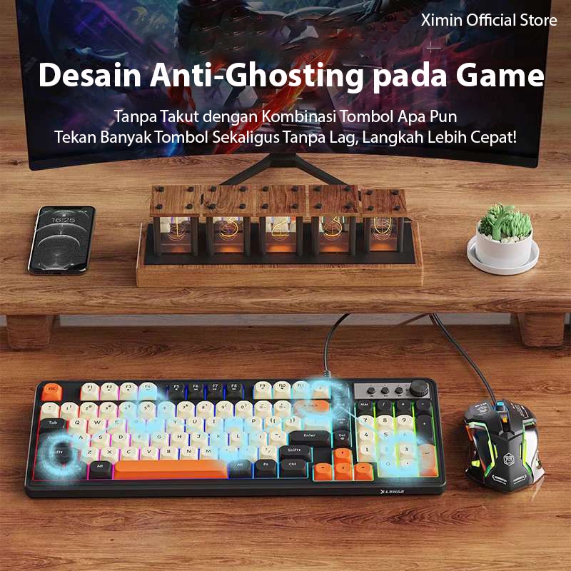 Keyboard Mouse Xim Pc K98 Gaming Esports Jerman Kabel Switch Coklat Senyap Mekanis