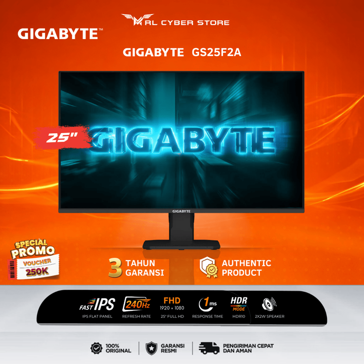 MONITOR GIGABYTE GS25F2A 25" 240Hz FHD IPS HDR10 1MS MONITOR PC GAMING 25 INCH GARANSI RESMI